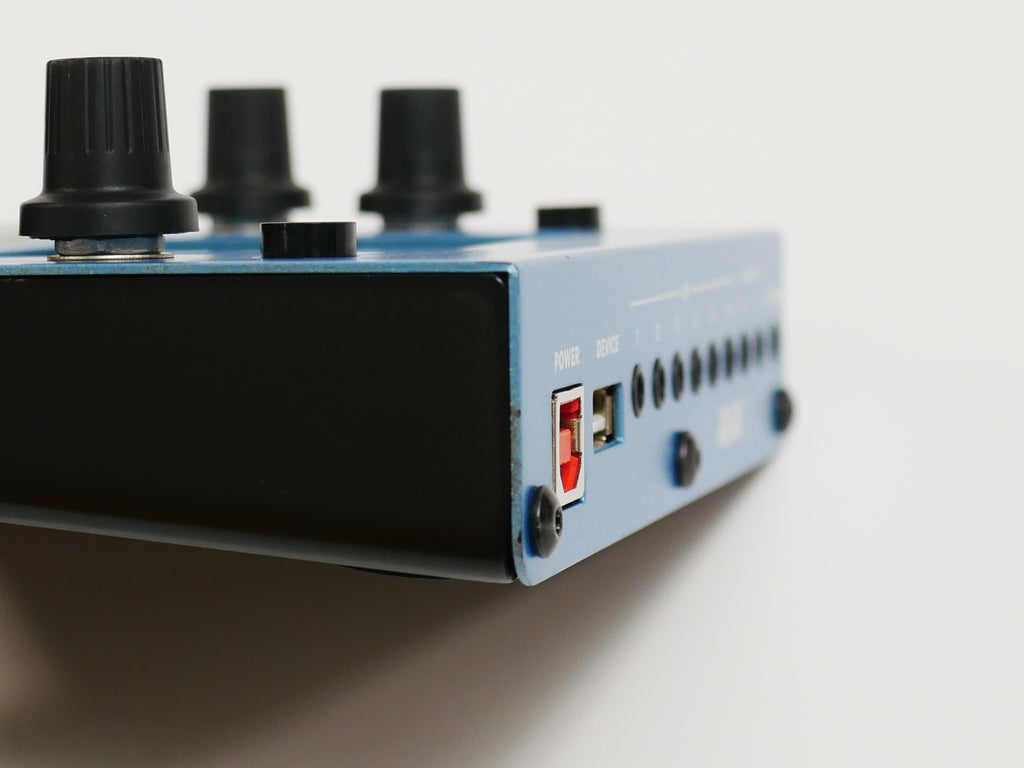 ステレオ3.5 mm TRS入力を6系統備え、12のモノラルトラックまたは6つのステレオトラックに録音できます。エフェクトはリバーブ、ディレイ、コンプレッサーを備えており、各トラックで4バンドEQも使用できます。