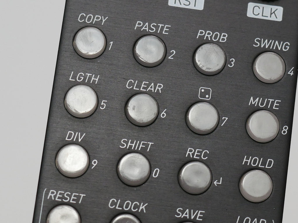 ランダム、プロバビリティ、スイング、クロックディバイドなどのほか、ボタンを使った瞬時のパターン切替、CVによるパターン間移動などの機能を搭載しています。