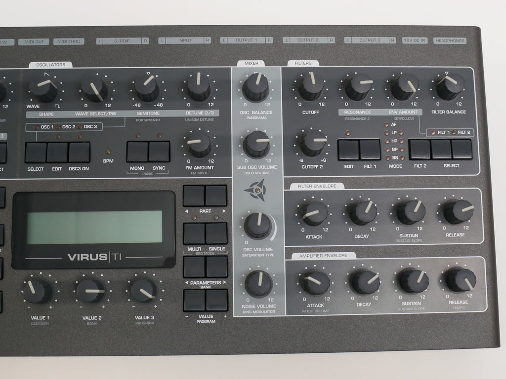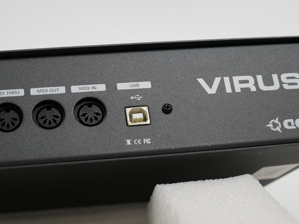 パソコンとVIRUSをUSB接続することでシンセサイザーとPCのスタジオシステムの統合環境が構築できます。 (ホストアプリ上でVST / AU プラグインとして認識) オーディオおよびMIDIインタフェースとしても機能します。 「TI」から「TI2」 になりDSP処理能力が25%UPしています。