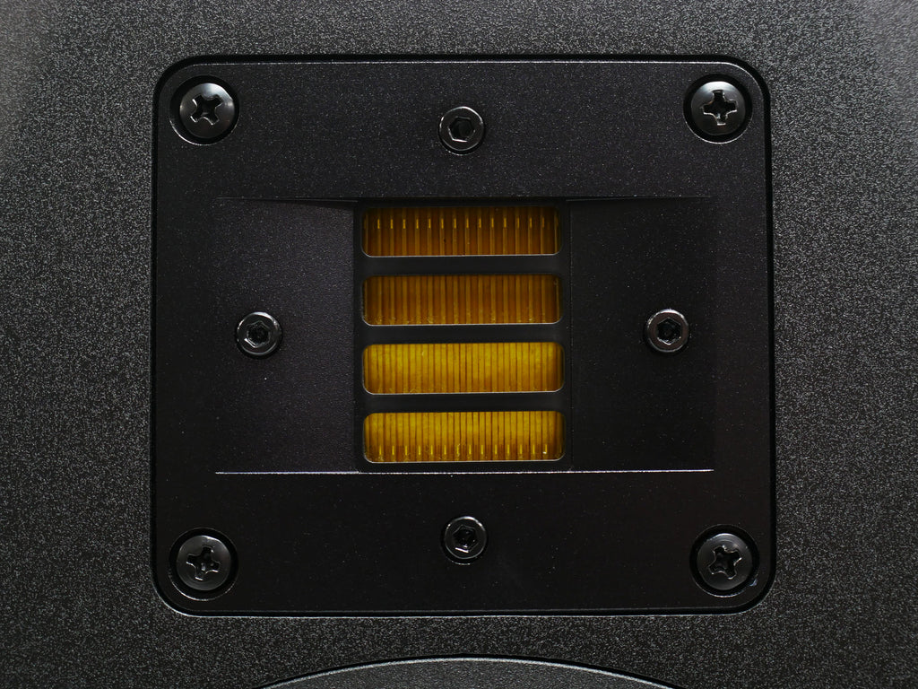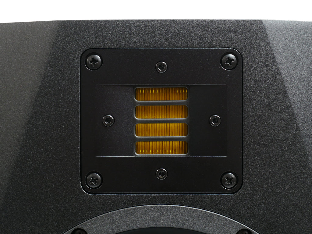 繊細な高域再生を実現するX-ARTツイーターを搭載しています。周波数レンジは42 Hz - 50 kHz、入力はXLRまたはRCA端子で可能です。前面にボリュームのコントロール、背面には3つの音域を調整するノブが付いています。
