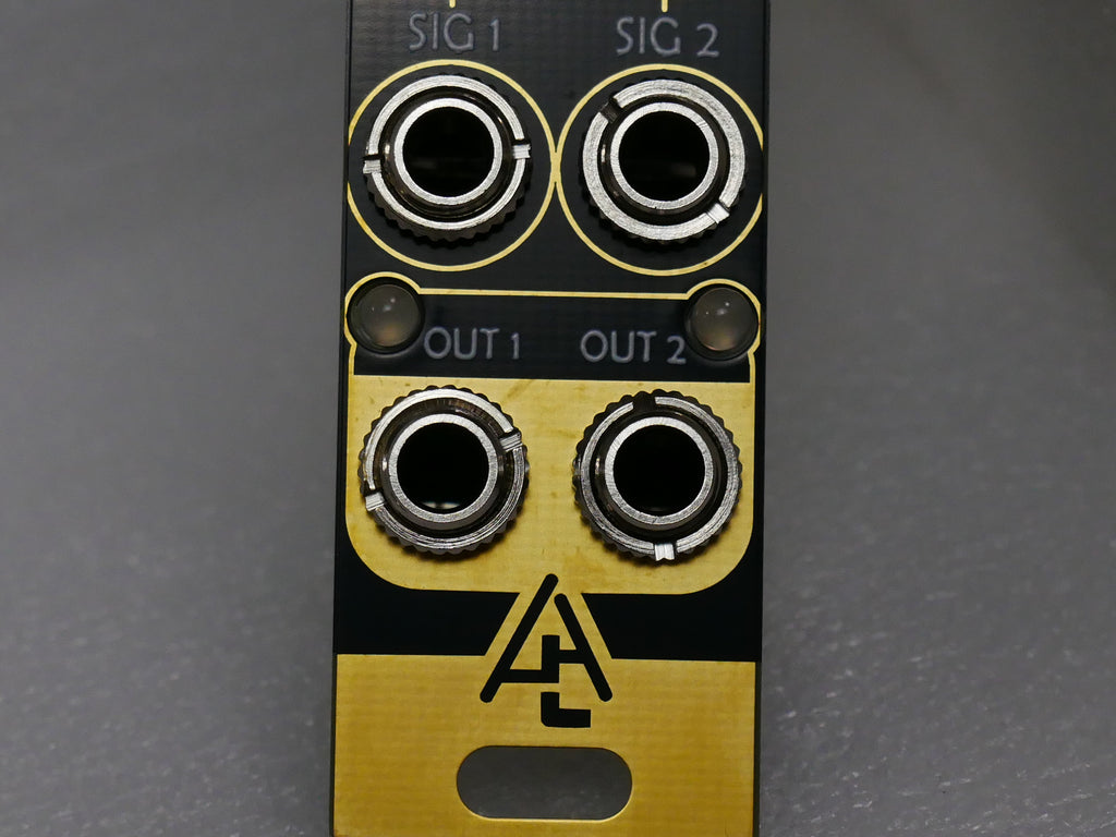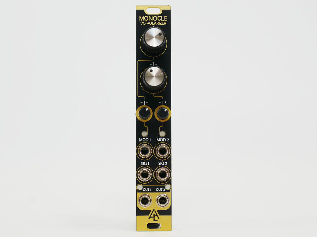 入力した電圧を増幅、減衰させたり、位相を反転して出力したりできるポラライザー・モジュールです。オーディオレートの信号を入力すればリングモジュレーターとしても使用できます。