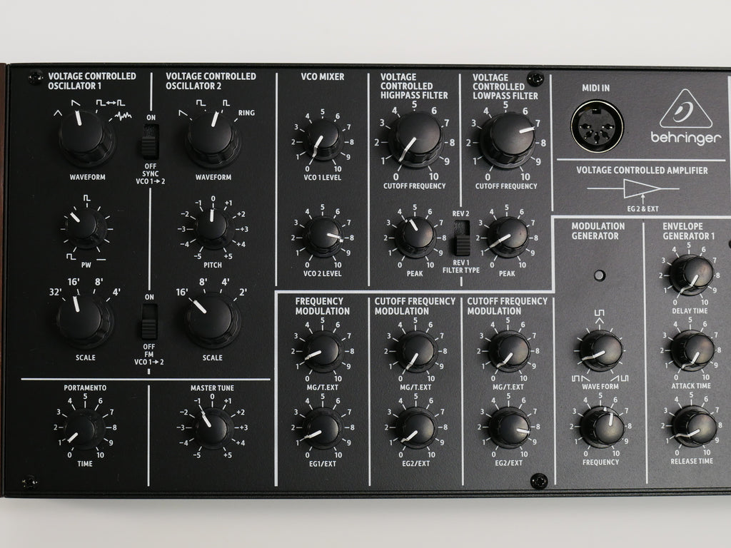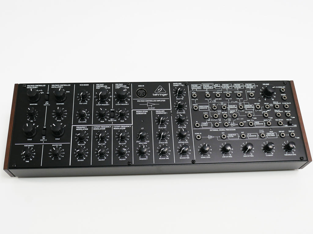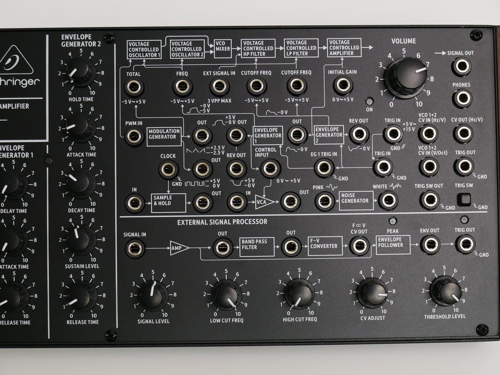 セミモジュラー構造のため、パッチングにより幅広い音作りが楽しめます。オリジナル機には無いオシレーターシンク機能とFM変調が追加されています。