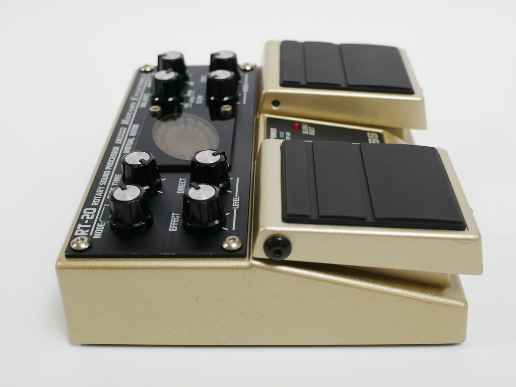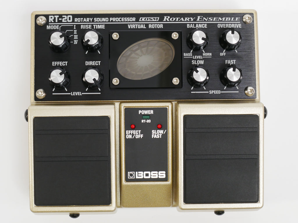 COSM技術でロータリースピーカーの効果をモデリングしたコンパクトエフェクターです。 4種類のエフェクトモードと、オーバードライブ、ホーン/ベースバランスやスピーカーの回転速度の調整で様々なロータリーサウンドを実現します。エクスプレッション・ペダルを使えば、ペダルでスピーカーの回転速度をコントロールする事ができます。