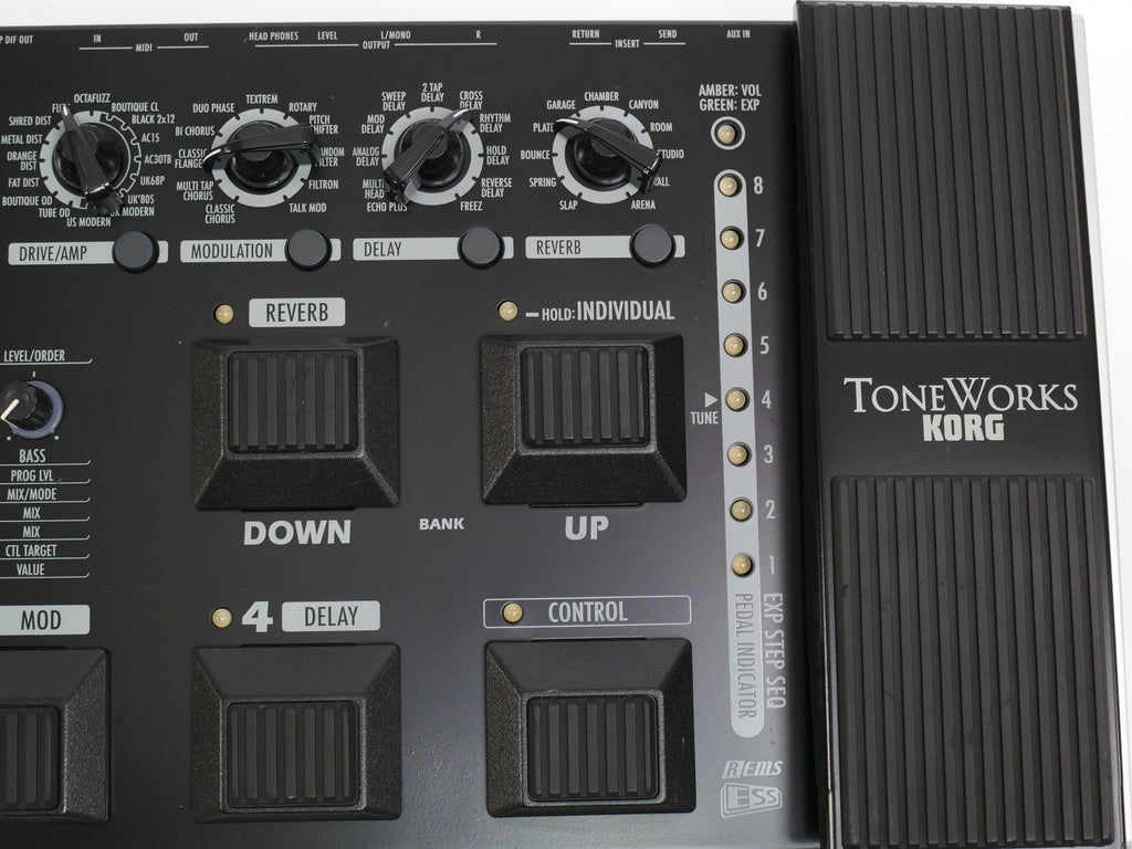KORG独自のモデリング・テクノロジー"REMS" (Resonant Structure and Electronic circuit Modeling System) による72種類のモデリング・エフェクトを搭載し、最大7種類を同時使用できます。