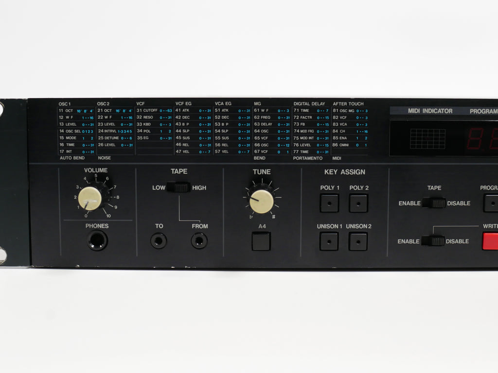 同社「DW-8000」のラックマウント版にあたるモデルで、エディットは同じく、OSC→FILTER→AMPといった減算方式を採用しています。音源部はデジタルですが、フィルター部等はアナログになっており、デジタルディレイや、最大64音のアルペジエイター、ポルタメント等、様々な機能を搭載しています。