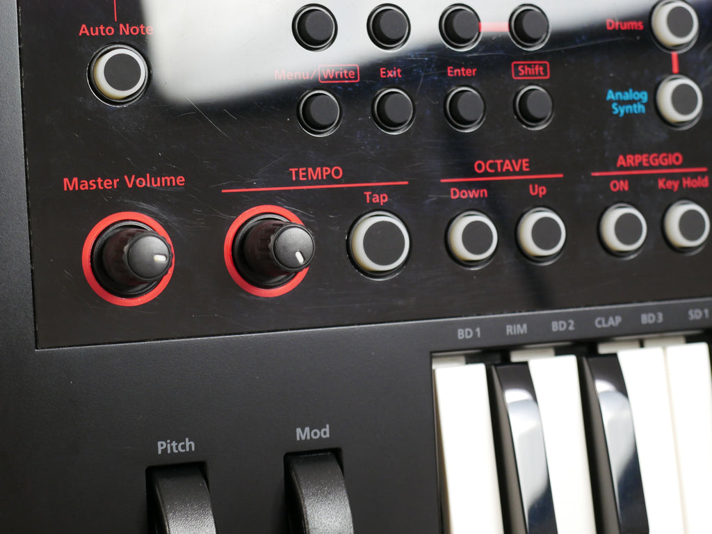 デジタルシンセ(SUPERNATURAL最大64voice)+アナログシンセ(1voice)という音源に加え、小さな筐体ですが4トラックのパターンシーケンサーが搭載されています。 ボコーダーも搭載しています。 本体からDAWへの録音や、DAWからのCCでアナログ音源を制御する等、PC/MACとの親和性も高く設計されています。