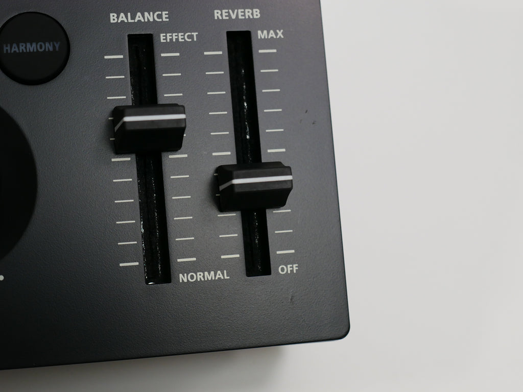 ピッチシフト、ボコーダー、ハーモニー等のエフェクトをフロントパネルのスライダー、ノブ、ボタンのみで簡単に操作できます。本体もコンパクトで電池駆動にも対応しています。