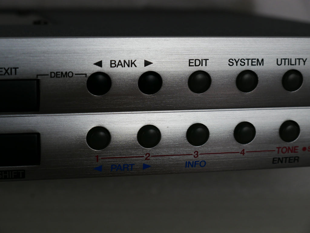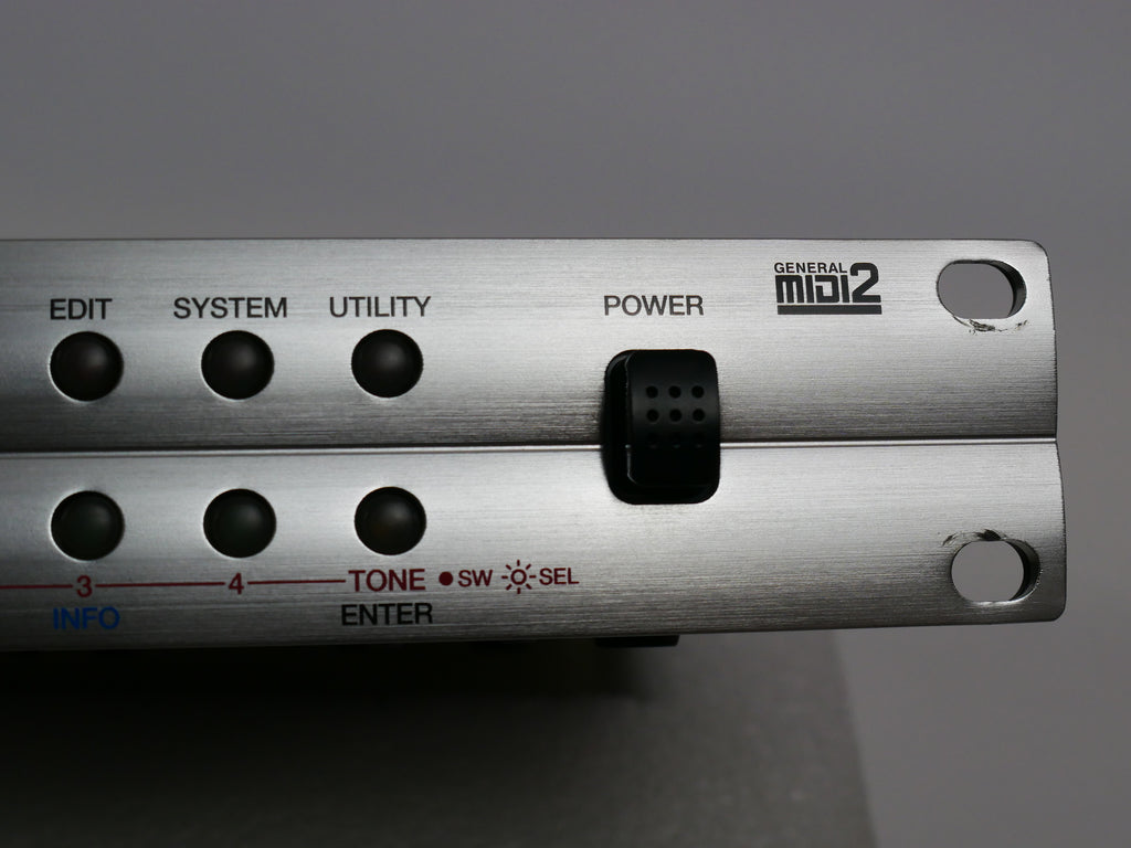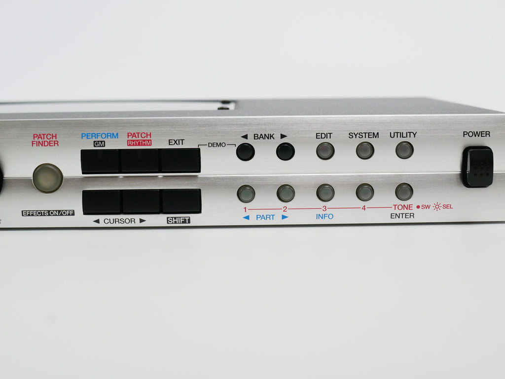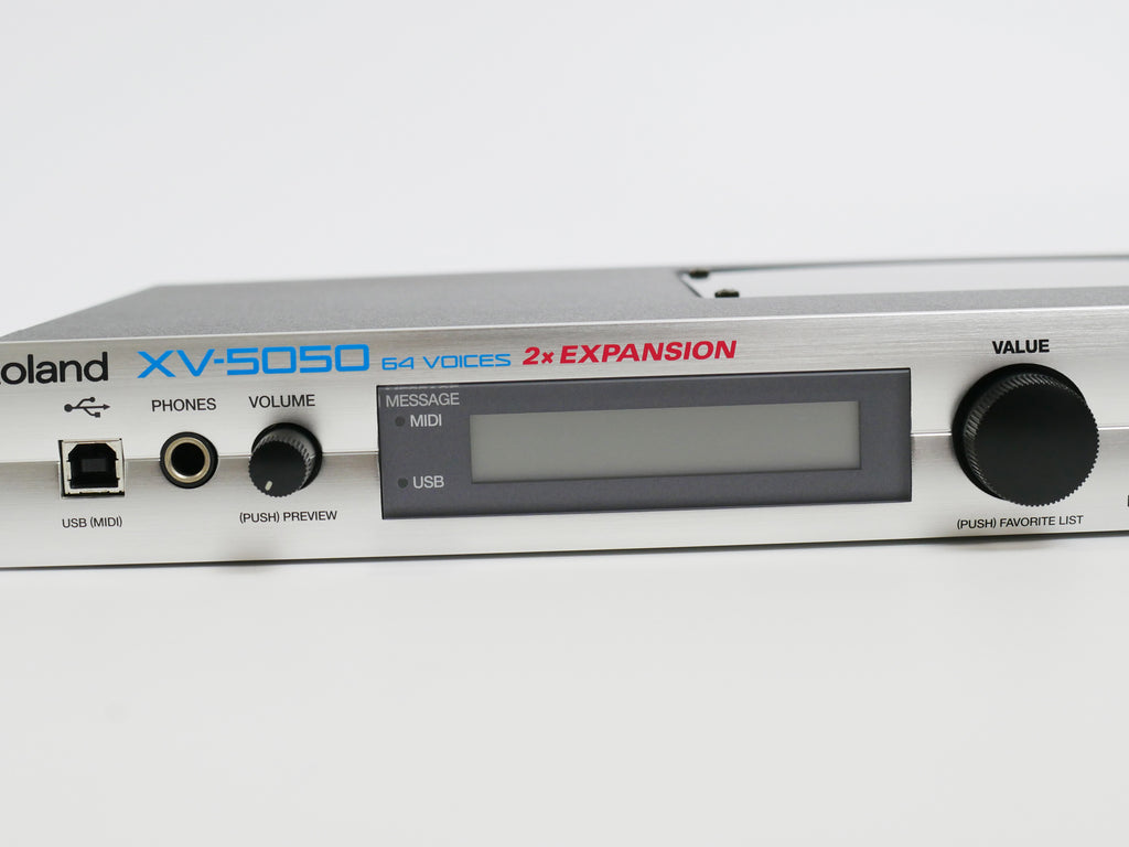 XV-5080のパッチにFantomやXV-5050専用の音色を 加えた1280パッチ、25リズムセットの音源モジュールです 。 エクスパンジョンボードSRXシリーズが二枚装備可能です。 USB端子を前面に装備しています。