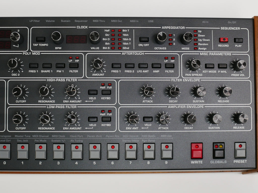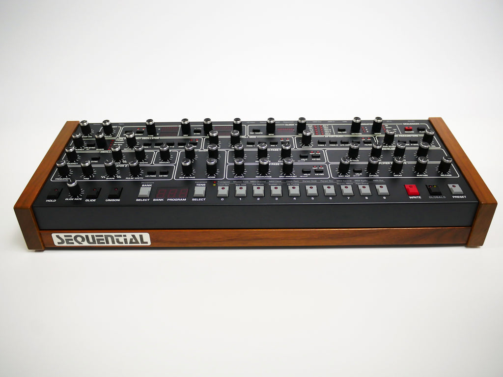 1978年に発売された「PROPHET-5」の設計思想を受け継いだアナログシンセです。6ボイス (1ボイスあたりディスクリートVCO×2) 、 エフェクト (アナログディストーション、ディレイ、コーラス)、 ボイスごとに2ポールのハイパスフィルター、4ポールローパスフィルター、 2ADSR、LFO、シーケンサー、アルペジエイター等かなりの機能を搭載しています。アナログ回路から、AD/DAによって起こる音質の変化を起こさないよう、 エフェクトへの信号もトゥルーバイパスが可能です。 PROPHET-5では実現できなかったアフタータッチ付きの49鍵盤を搭載し、とても表現豊かな演奏が可能になりました。また、プリセット411番~458番はJohnBowen氏によるPROPHET-5の1-1~の再現プリセットを収録しており、昔からのファンにとっても嬉しいプレゼントになっています。