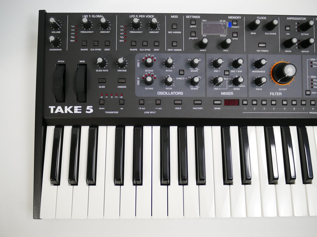 Take5は、コンパクトな44鍵の5ボイス・アナログ・ポリフォニック・シンセサイザーです。