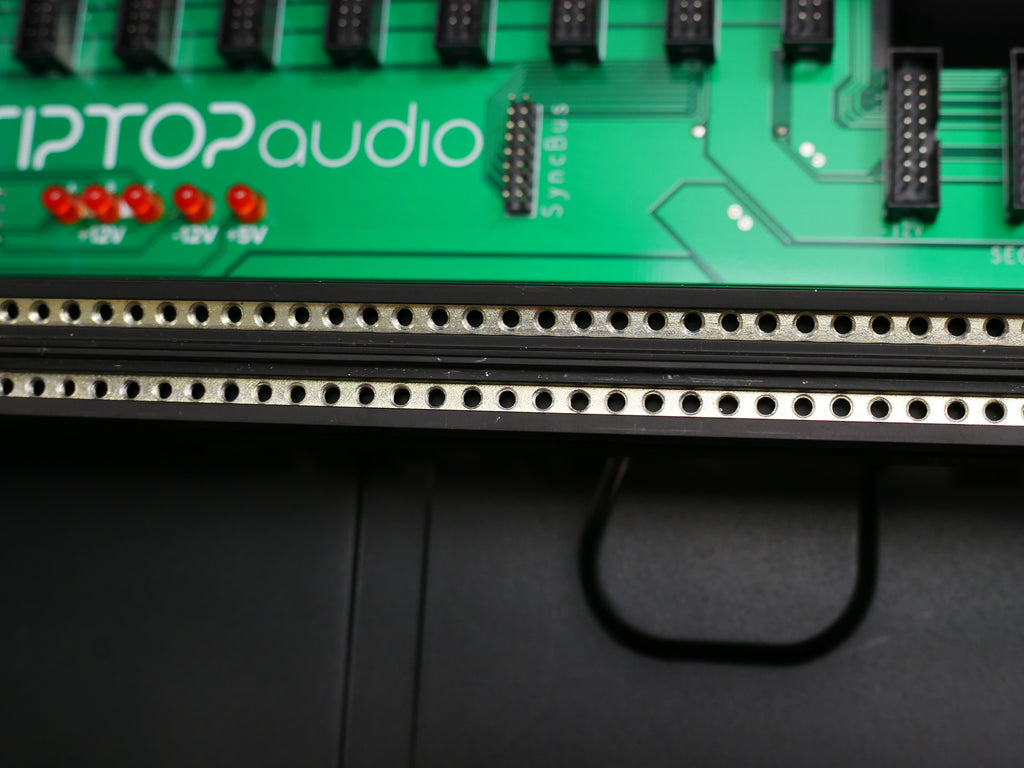 104HP分が二段、合計208HP分のモジュールが収納可能です。大容量の電源を搭載しています。
