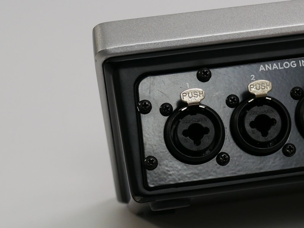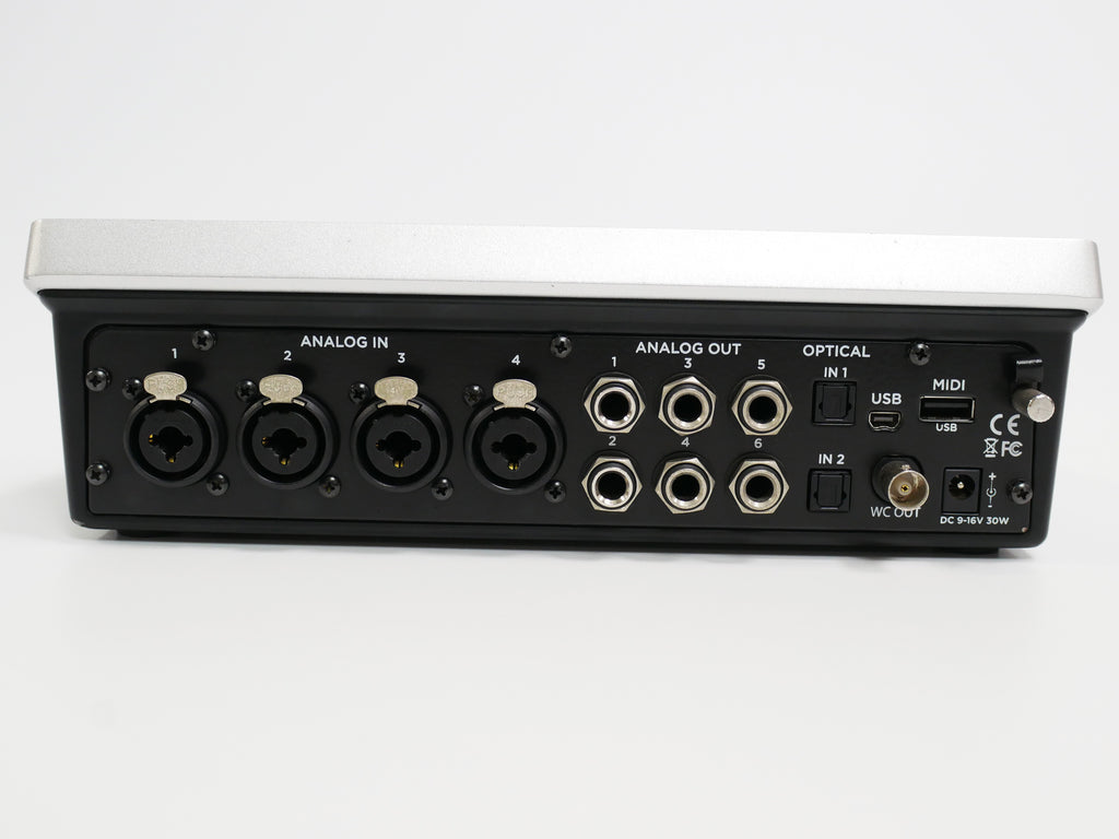 アナログ入出力は4IN6OUT、デジタル入力も2系統付いています。マイク・プリアンプ、AD/DA、クロック精度に関してApogee社の持つクラス最高品質の先進技術を採用しています。